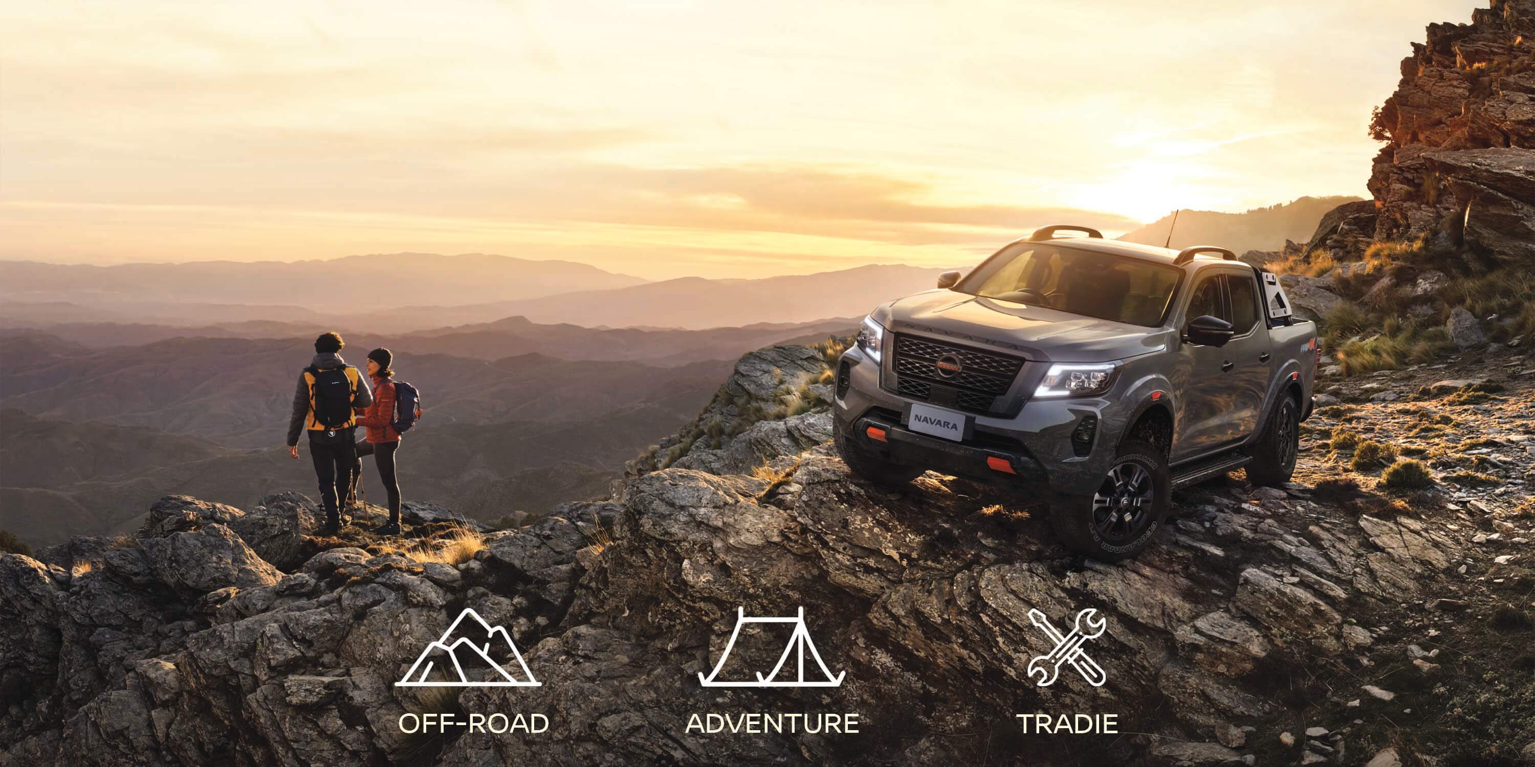 *Offer available on purchases of new 2021 Nissan Navara models ordered by 28 February 2021 for delivery by 30 June 2021. Excludes government, rental and national fleet customers. Save up to $550 for the Tradie Pack, $750 for the Adventure Pack and $1000 for the Off Road pack, depending on vehicle model. Limit one pack per vehicle. Not transferrable or redeemable for cash. Not available in conjunction with any other offer. Nissan reserves the right to vary, extend or withdraw this offer.